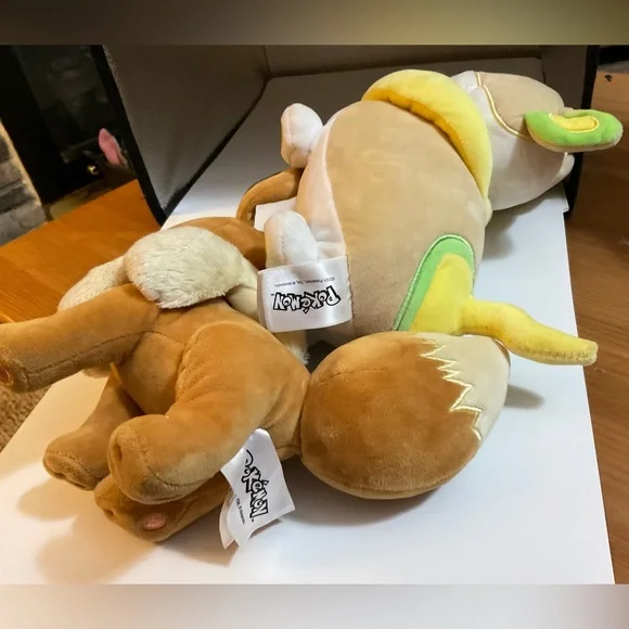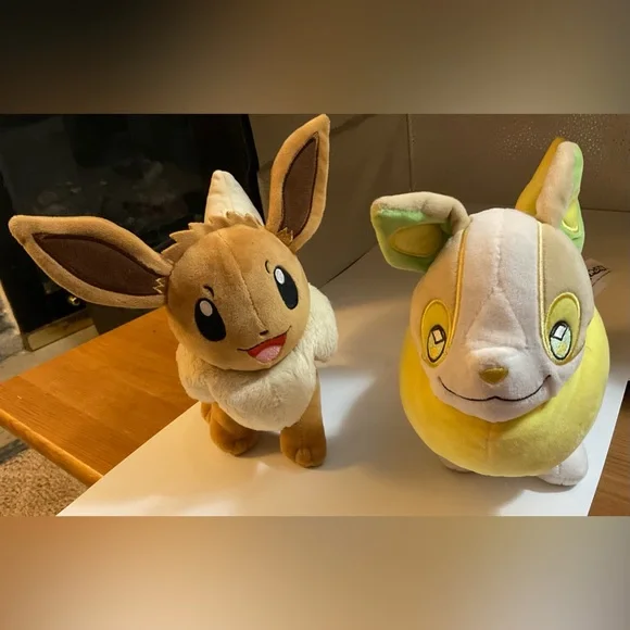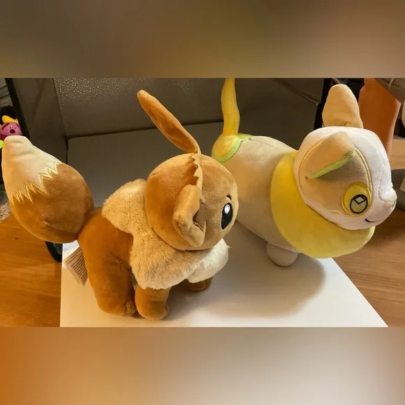Nintendo/ Pokémon: Eevee brown bunny and Yamper yellow bunny and white bunny trio set about/ approximately 8” inches. N white bunny about /approximately 15’ inches Sold as is no returns . No refunds, sales are final. Excellent in great preowned standards conditions. Perfect for boys and girls.