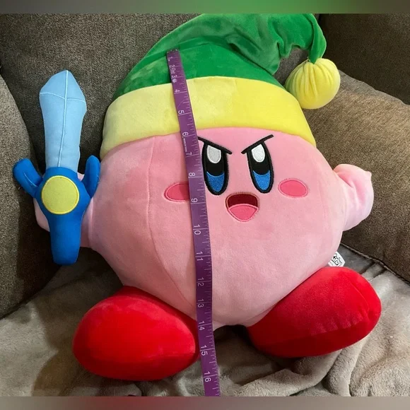 Nintendo Kirby: set of two mega plush measurements are about/approximately 14” inches Delight your child with this adorable Kirby plush toy set. Featuring vibrant pink and red colors, these toys are perfect for cuddling and playtime.cowboy and sword set . No rips, no tears in preowned condition very soft sold as is no returns no refunds no smells all sales are final absolutely no exceptions