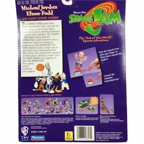 Vintage Michael Jordan, Elmer fudge with flight school flinger space jam tune squad action figure. New without tags, still in the box. 90s! 12 inches high, 9 inches wide. Pristine condition! Smoke and pet free home. Vintage space jam. Michael Jordan. Looney Tunes.
