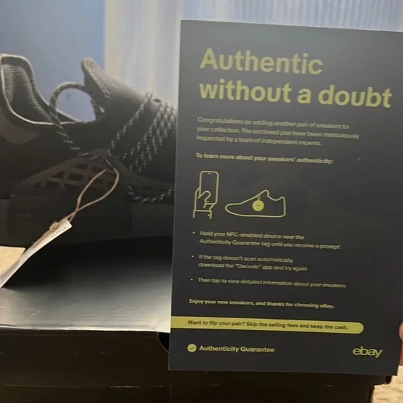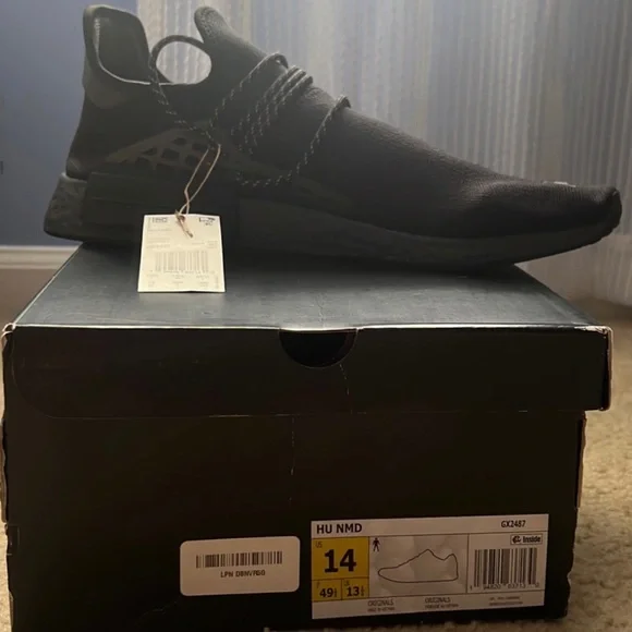Adidas NMD Hu PharrellHuman Race Triple Black PackSize 14 never worn. Bought from eBay, has tag authentication