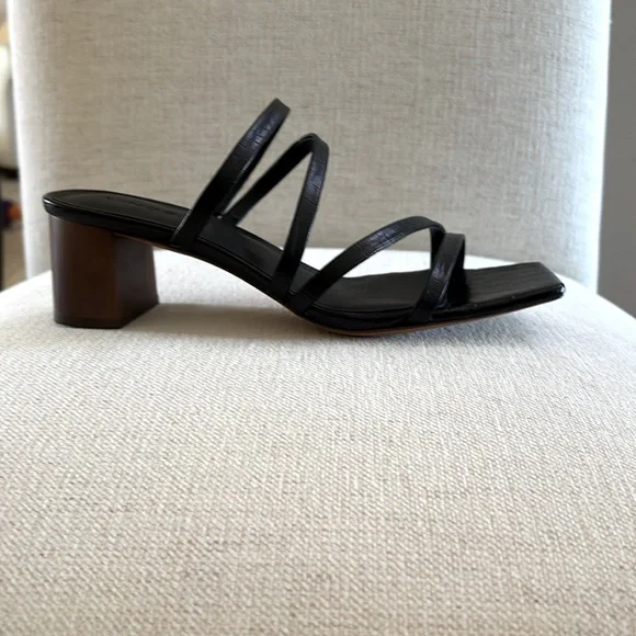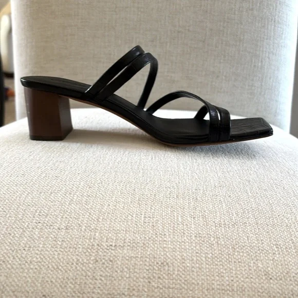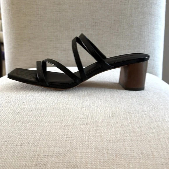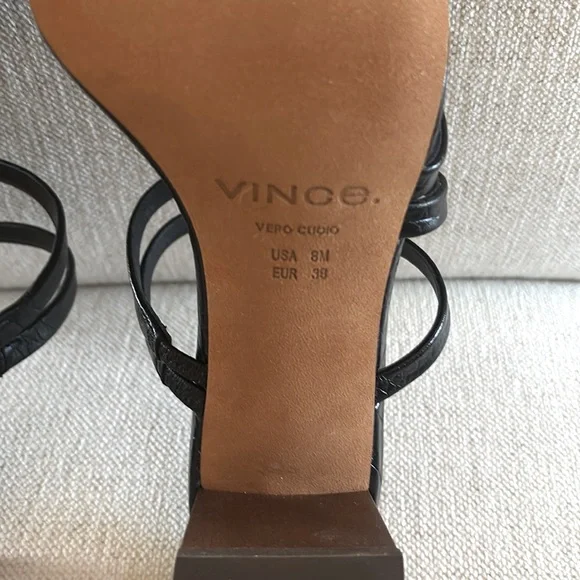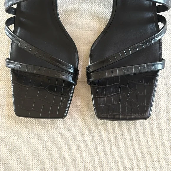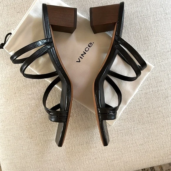 Vince Elita Sandals in Black Croc with Cognac Heels. Square toe adds elegance to this sandal. Size 8. Have this sandal in bone also. New with all packaging including dust bag. These are beautiful!
