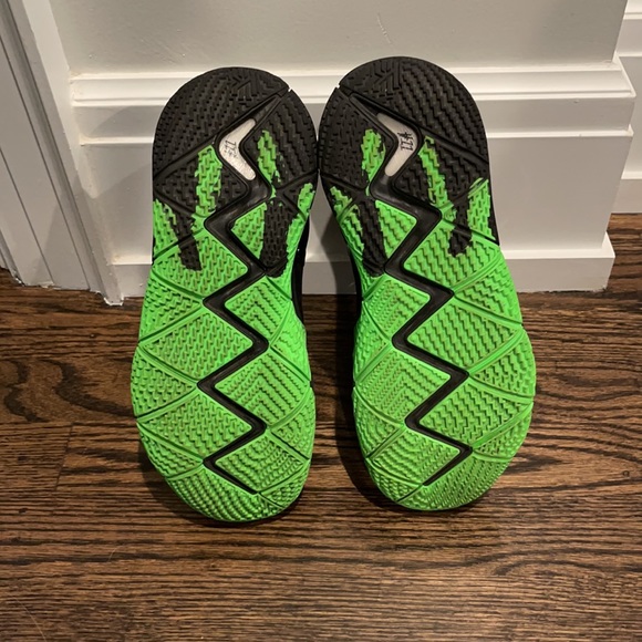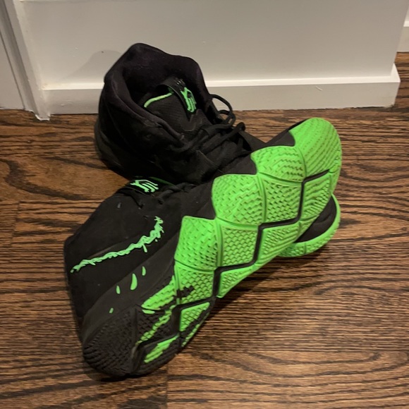 Nike Kyrie IV Halloween edition.Worn in approximately 8 indoor games by 7th grader.8.5/10.Slight fray on inside top left shoe.Great tread.Authentic.Too many kids to keep track of...