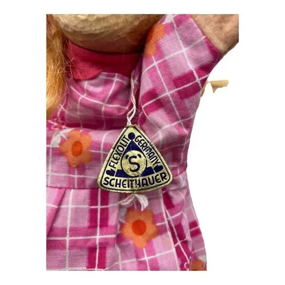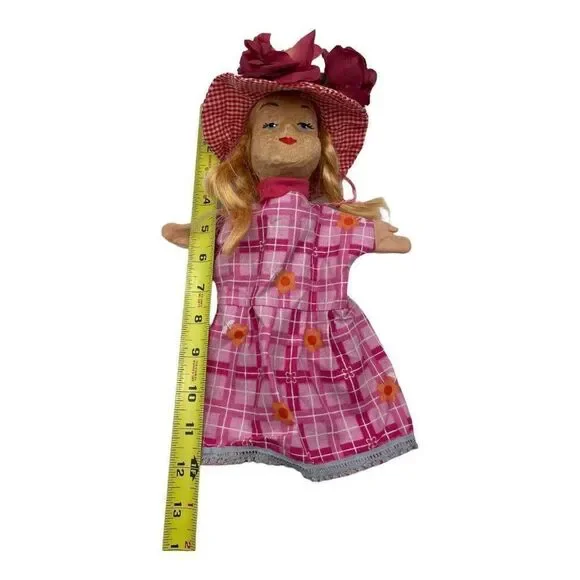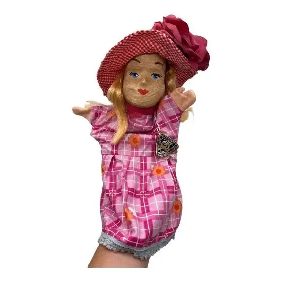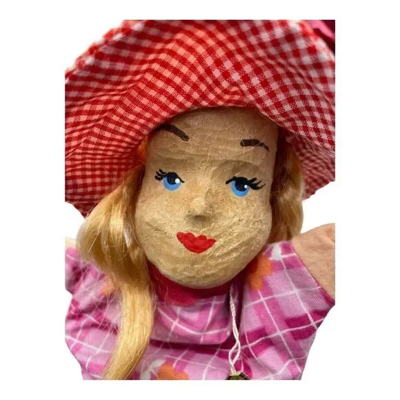 Vintage Hand Carved Wood Flexolit Scheithauer Hand Puppet Germany Pink Dress HTFpreowned please see photos for condition and measurements