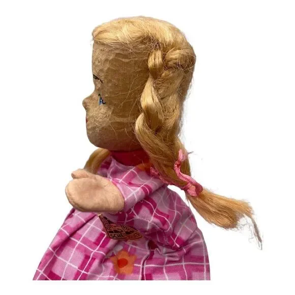Vintage Hand Carved Wood Flexolit Scheithauer Hand Puppet Germany Pink Dress HTF