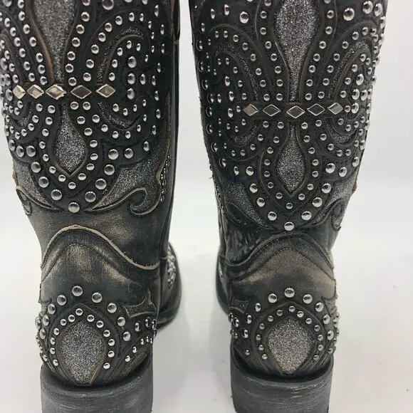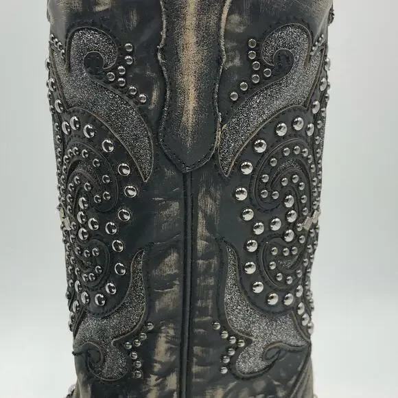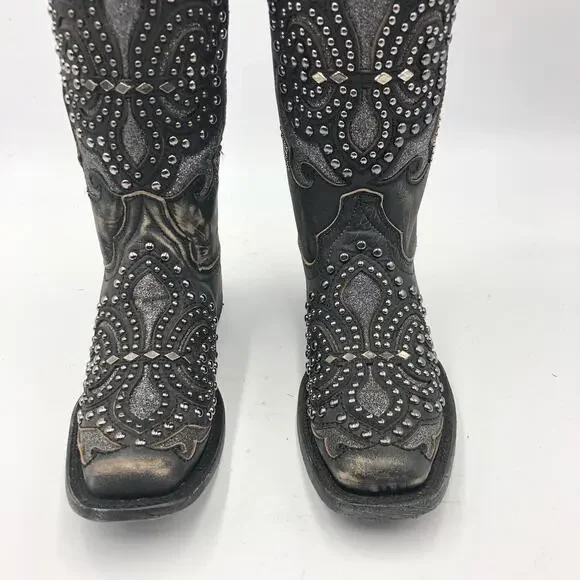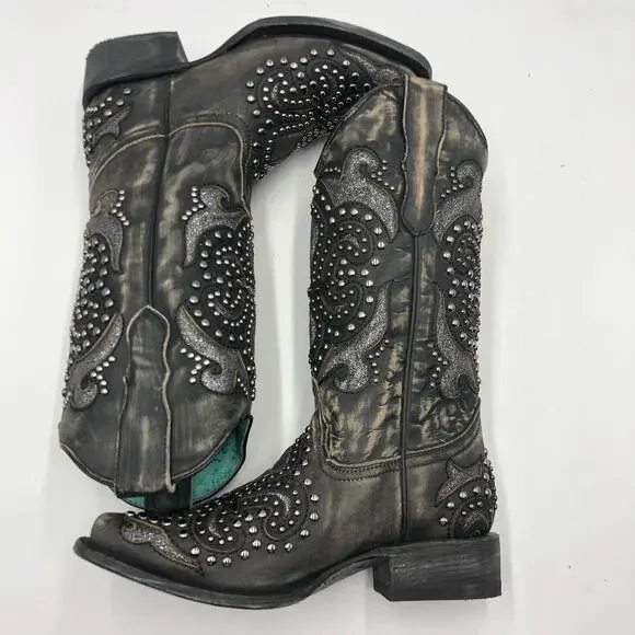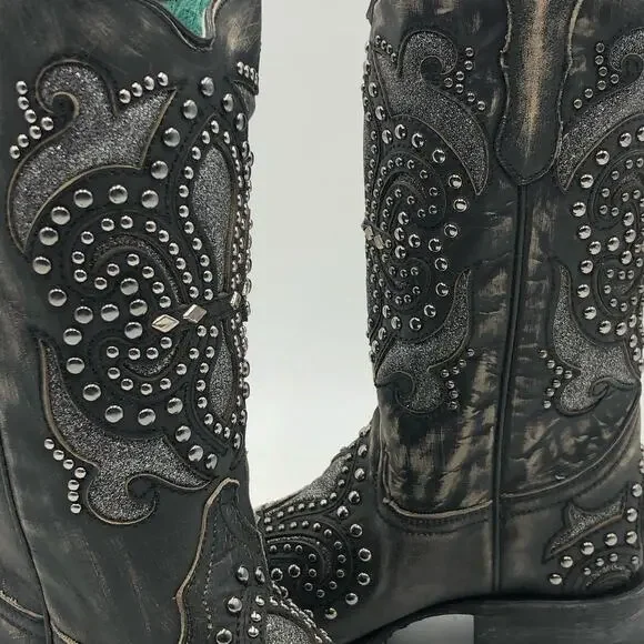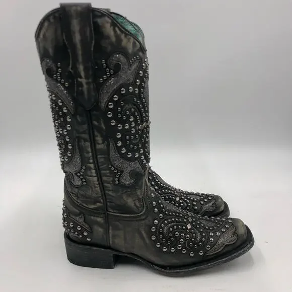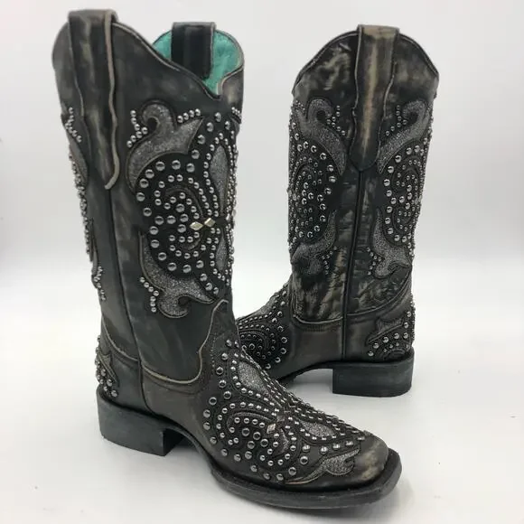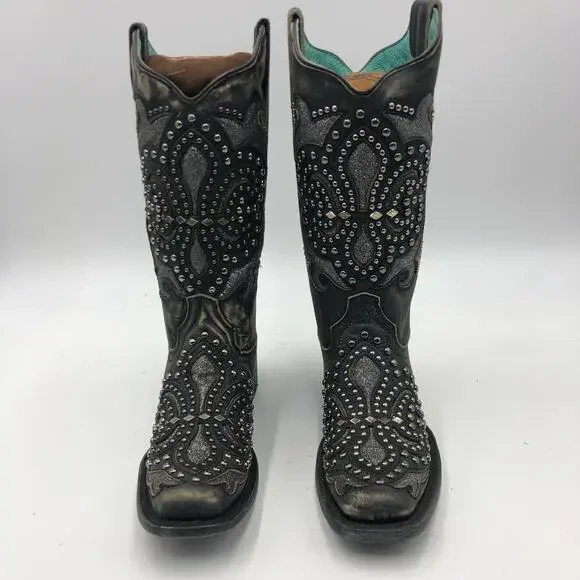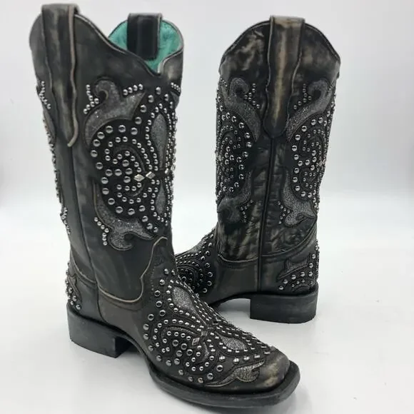 Corral Womens Inlay & Embroidery & Studs Square Toe Black Size 7 M
