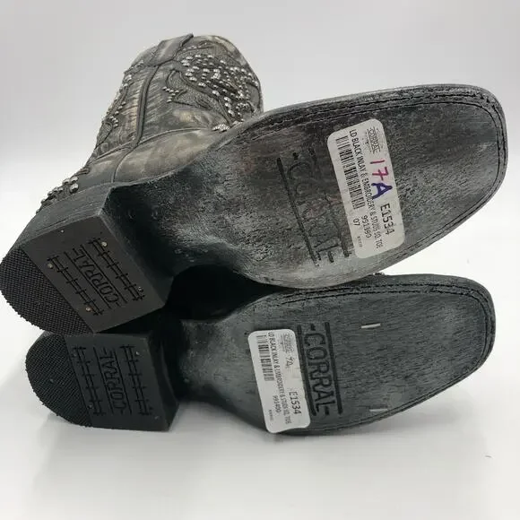 Corral Womens Inlay & Embroidery & Studs Square Toe Black Size 7 MBrand : CorralStyle :Inlay & Embroidery & Studs BootsColor : BlackSize : 7 MSku No :8710Condition ; New With...