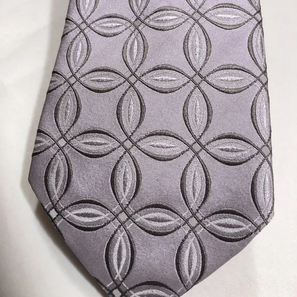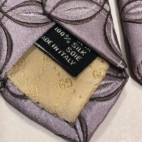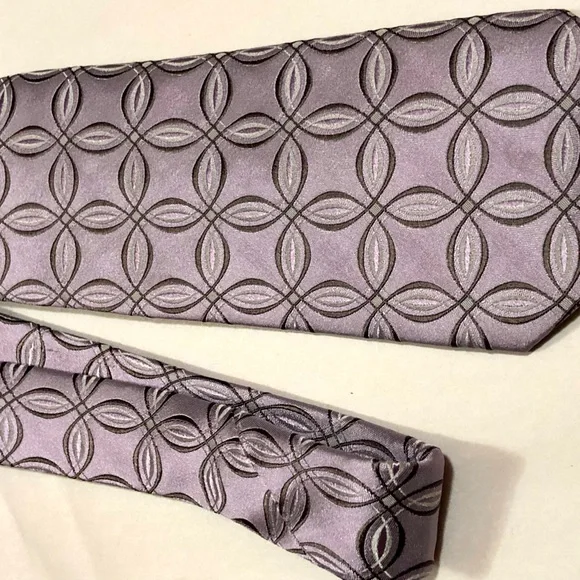 Absolutely gorgeous Preowned tie by designer . This premium luxury tie is in excellent condition. All Silk, Light purple, circular pattern design. This stylish and stunning tie is a compliment to any garment. From a Smoke free home.