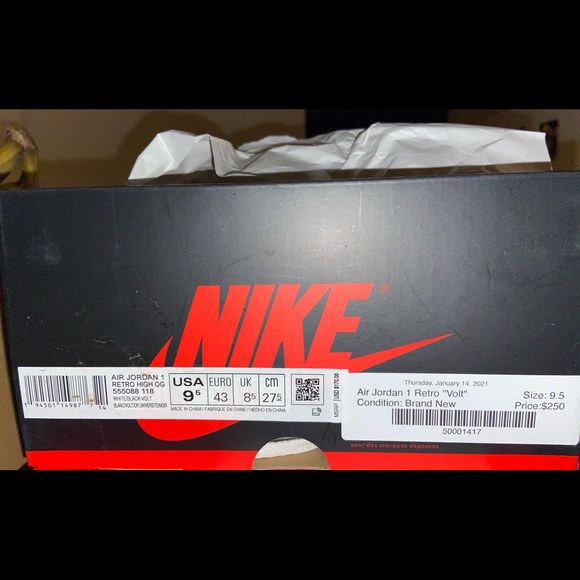 Air Jordan 1 Retro ”Volt Gold” it’s worn once asking $230 OBO