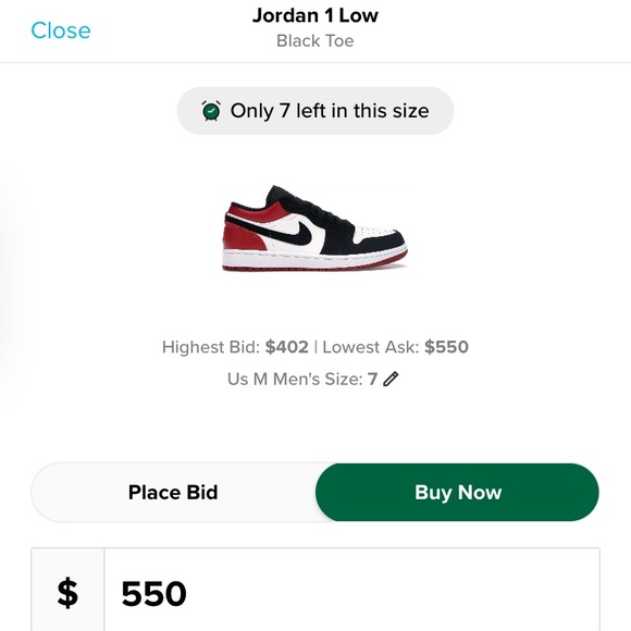 Jordan 1 low black toe, worn a few times good as new