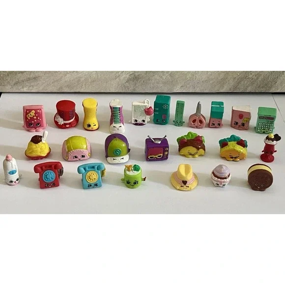 Everything in photos is included.All are in great condition. The eraser, ruler, calculator, diary, fridge, and phone, have some very minor indentations but not noticeable unless you look closely.Please see photos to approve condition. No other visible flaws detected.Everything is from season two, many glitter pieces, most are rare and ultra rare. All 18 includedEverything has been washed, sanitized, and is ready to go.I have other sets of Shopkins in my listings.Thanks for looking!Dive into the world of Shopkins with this comprehensive 24-piece collection from Season 3. Featuring an eclectic mix of characters, this set includes rare, ultra rare, pearl, shiny, and special edition mini-figures. Each piece is a testament to the whimsical charm of the Shopkins universe, crafted by Moose Enterprise to delight fans and collectors alike.The collection boasts an array of features that make it a prized possession for any enthusiast. Exclusive and limited edition figures, along with first edition treasures, showcase the dedication to quality and collectability. Whether for play or display, these miniatures are sure to be a dazzling addition to any Shopkins assemblage.Set #3
