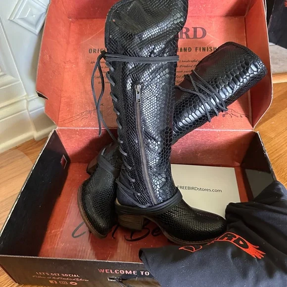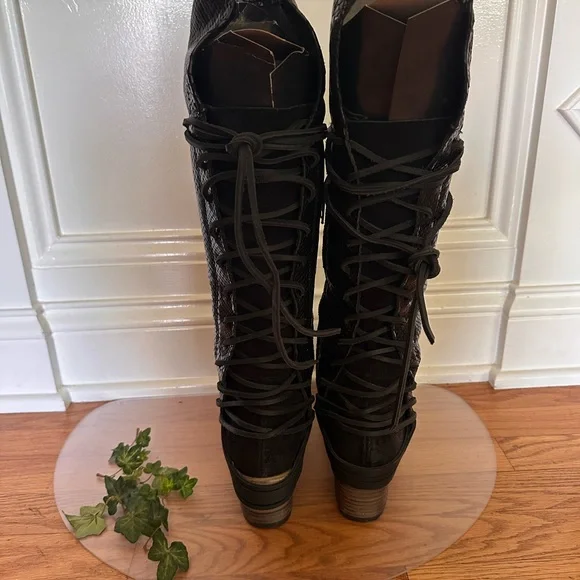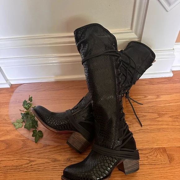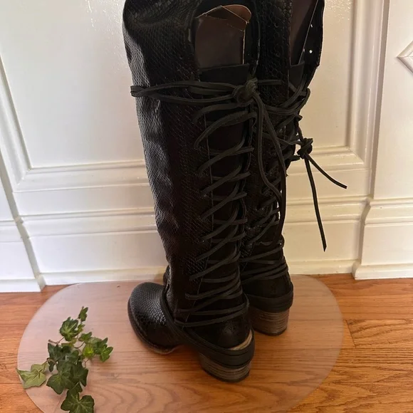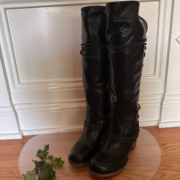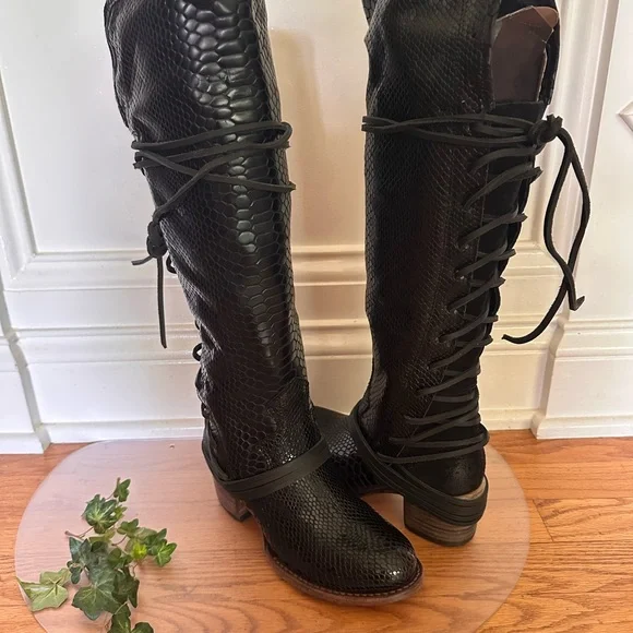 Freebird Black Over the Knee Snakeskin Boots
