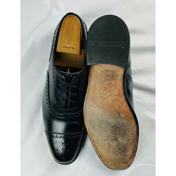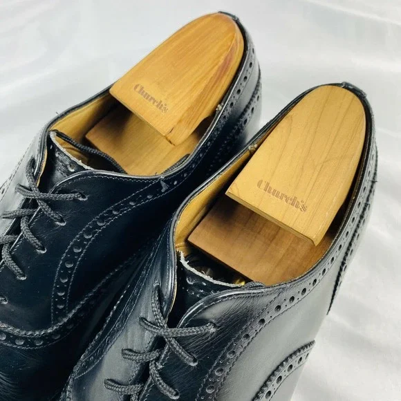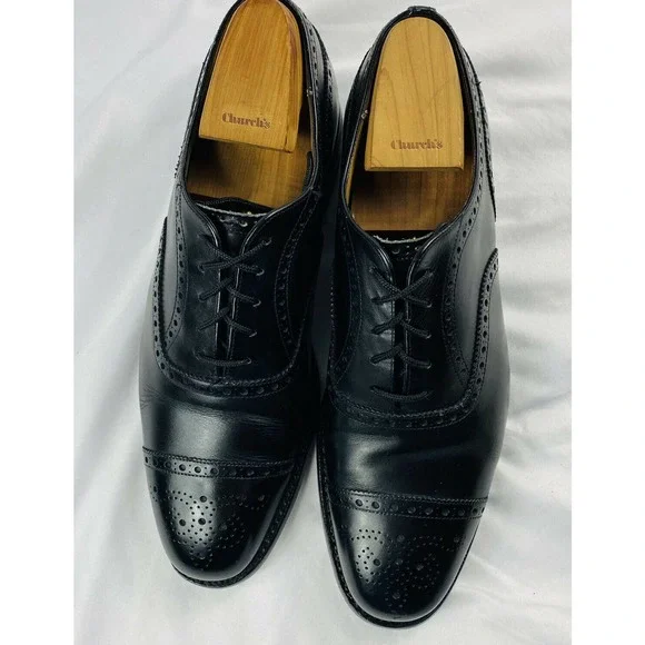 Churchs Black Leather Mens Wingtip Dress Shoe Size 9 Excellent