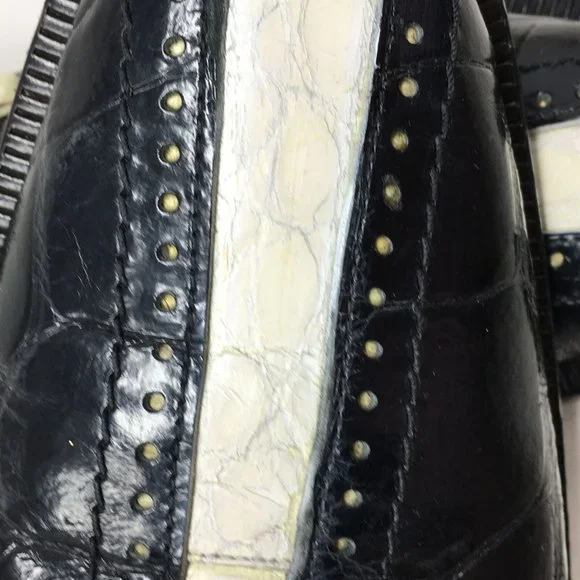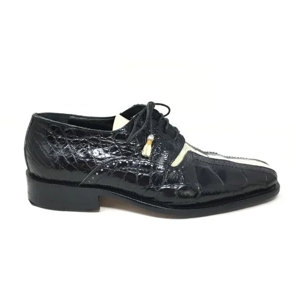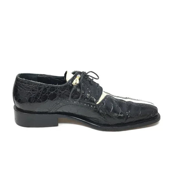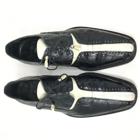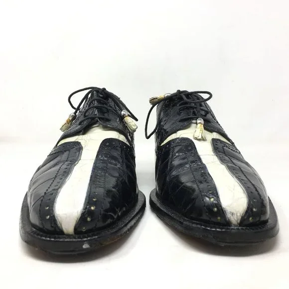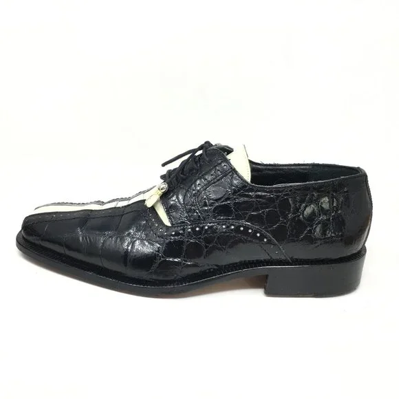 Men´s Fennix Italy Oxfords Shoes Size 10.5 Black White Full Genuine Alligator