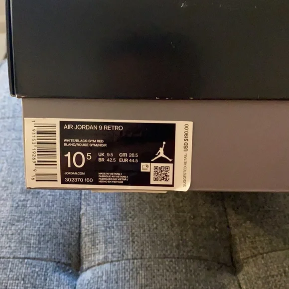 Air Jordan 9 retro white/red size 10.5. Almost new condition. Very clean. In original box