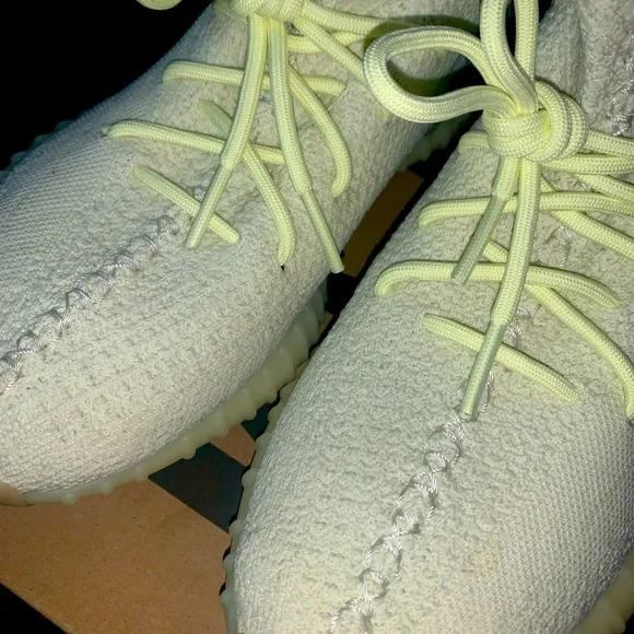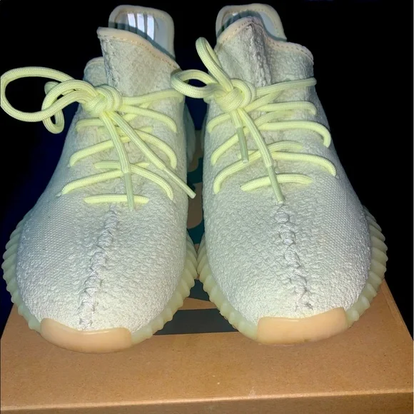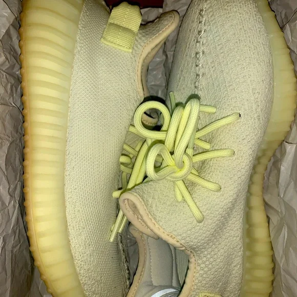 Adidas Yeezy Boost V2 Butters are like brand new, worn once! I live in a tiny town so no reason to wear them around! No defects at all whatsoever, bottoms just a little used. No stains at all. Comes from a smoke free and pet free home!