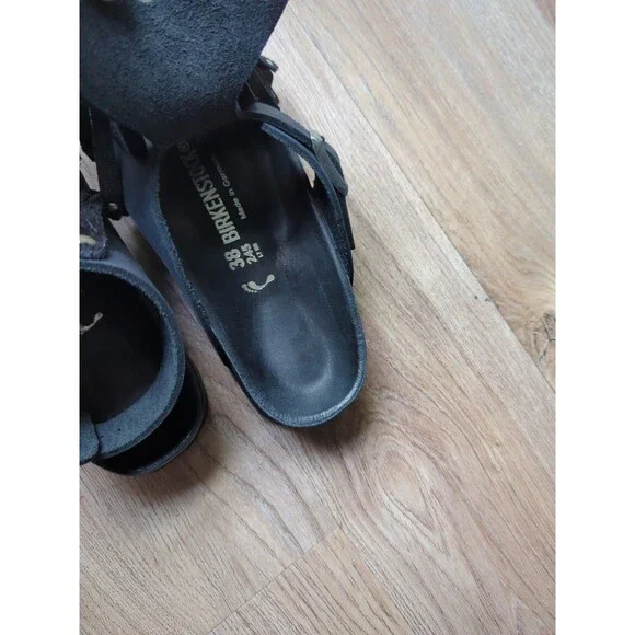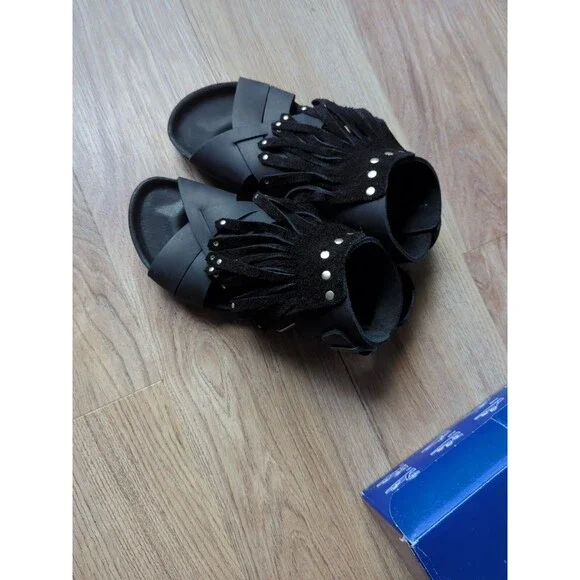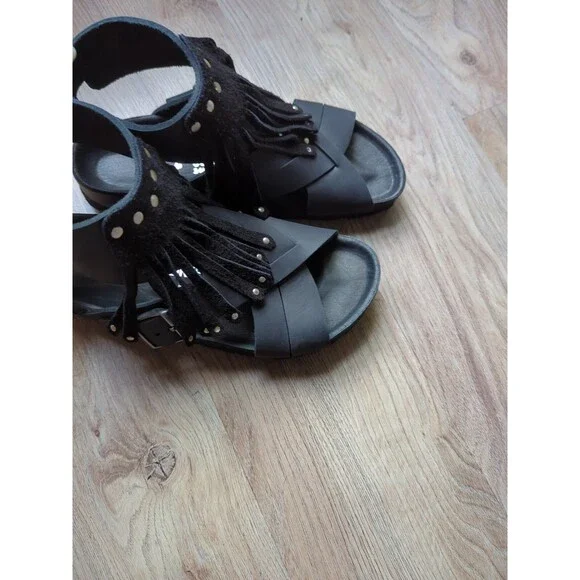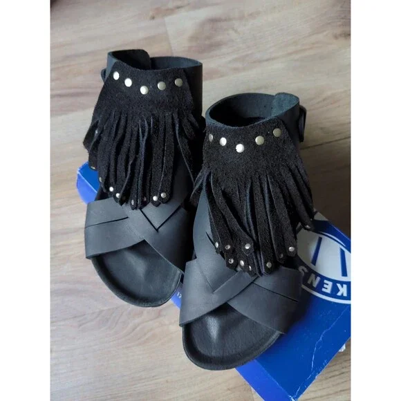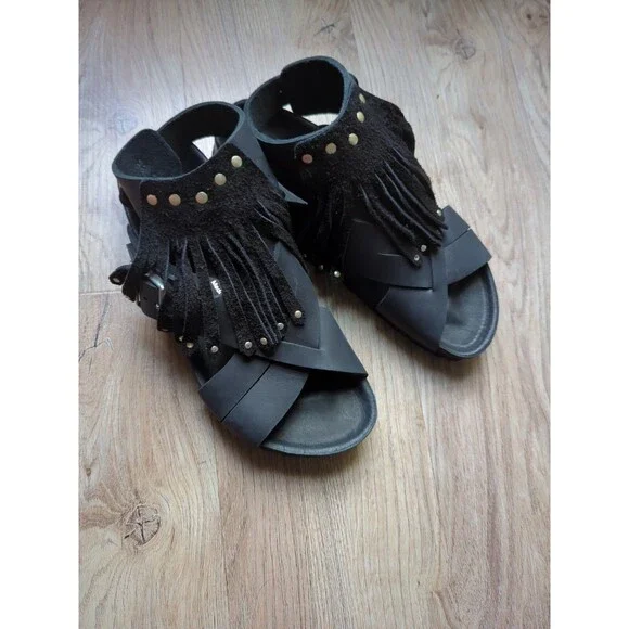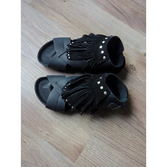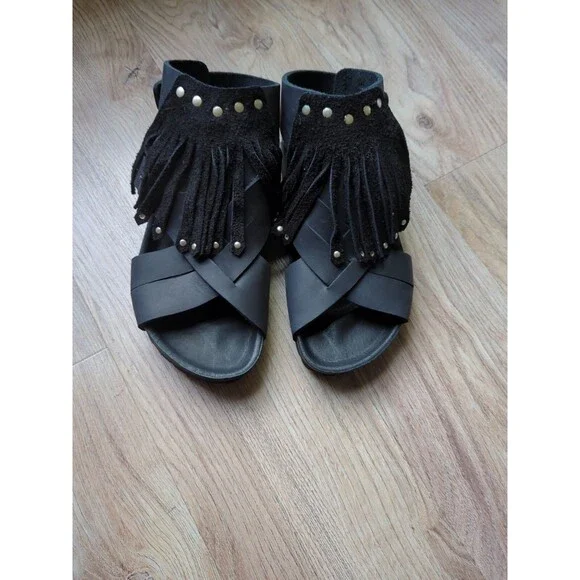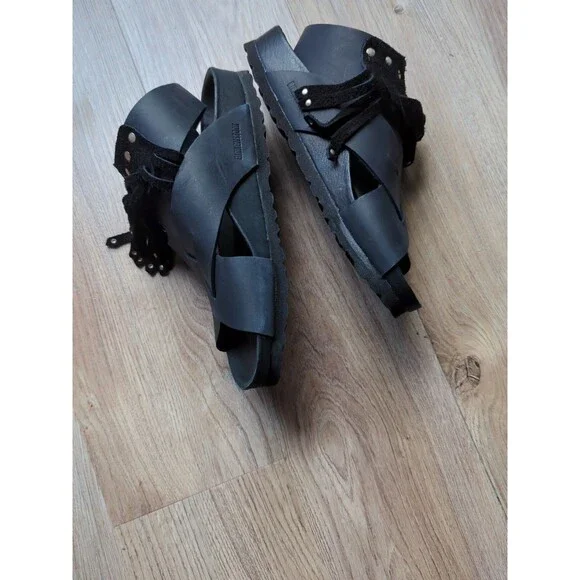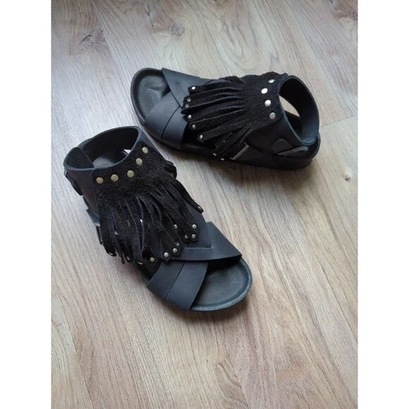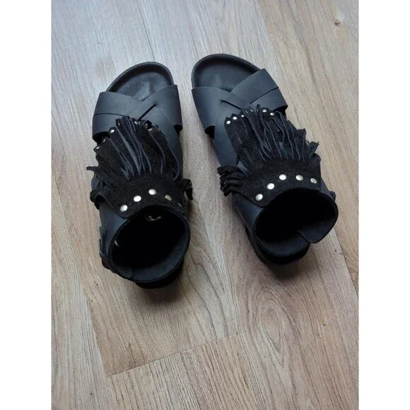 Birkenstock Tunis Gladiator Fringe Exquisite Leather Sandals, Black Leather, Size EU 38 Women´s 7-7.5
