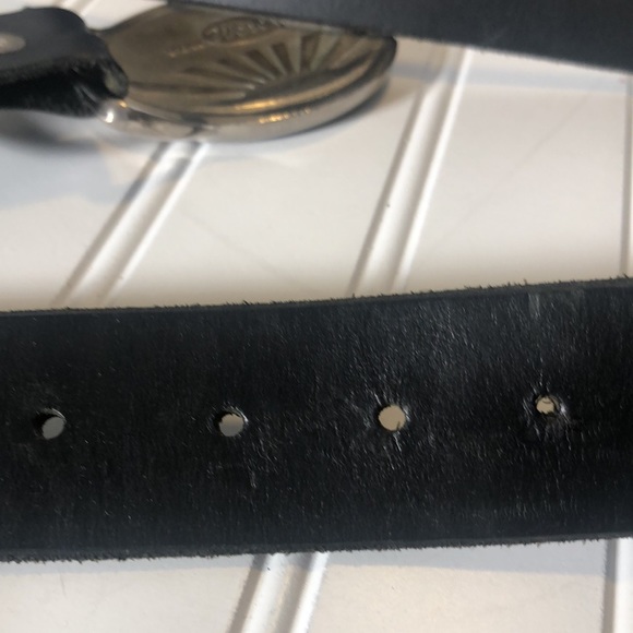 Vintage belt buckle with cogs, steampunk vibe. Black leather belt is made by T. Staley in Las Cruces New Mexico and is very long, approx 55”. More measurements in pictures. Buckle is removable. In good condition. Most wear is seen in holes section of belt, minor scratches on buckle. Bundle with other items and save. MBTS