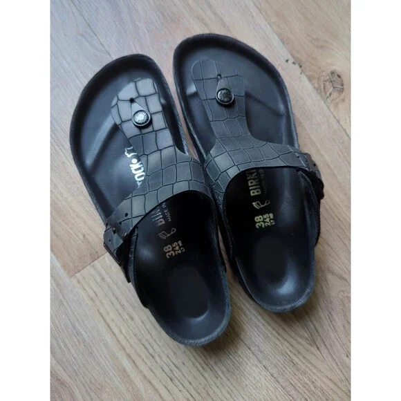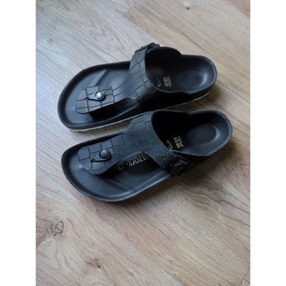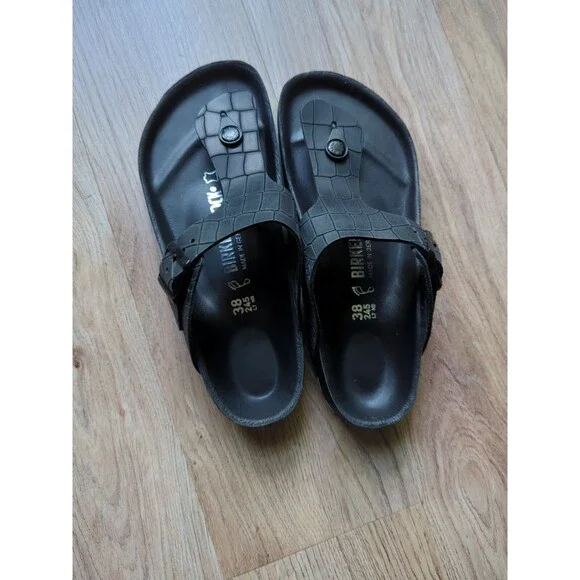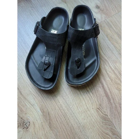 Birkenstock Ramses Croco Exquisite Leather Thong Sandals Womens 7-7.5 EU 38 Regular/wide