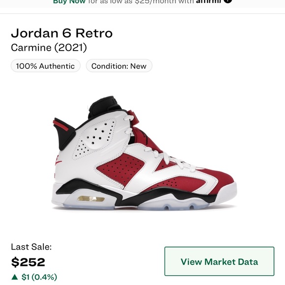 JORDAN 6 RETRO CARMINE SIZE 10 PRICE NEGOTIABLE