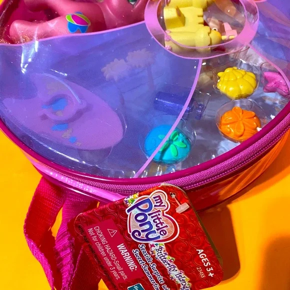 My Little Pony G3NWT Vintage 2004 Butterfly Island Seaside Surprise With Sweet Summertime Magnetic Playset In Zippered Plastic Case With Pink Adjustable BackPack Straps, Touch The...