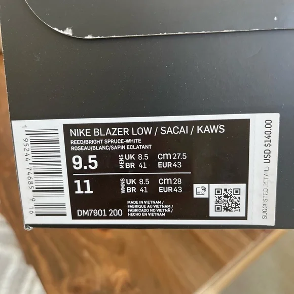 KAWS x sacai x Blazer Low “Reed” 9.5M NIB