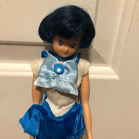 Vintage Sailor Moon Doll Mercury , Bluish black Hair with Blue & white outfit & Blue boots, Just beautiful!, Approximate 12” Tall, Excellent condition