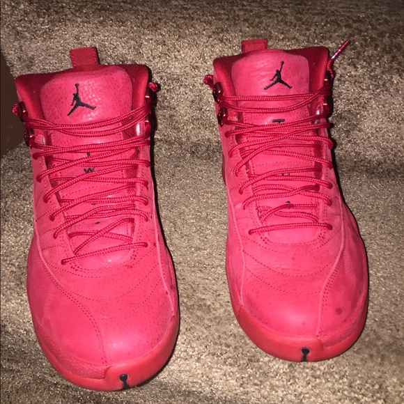 Jordan retro 12 All red/ suede and leather9-10 condition Like new