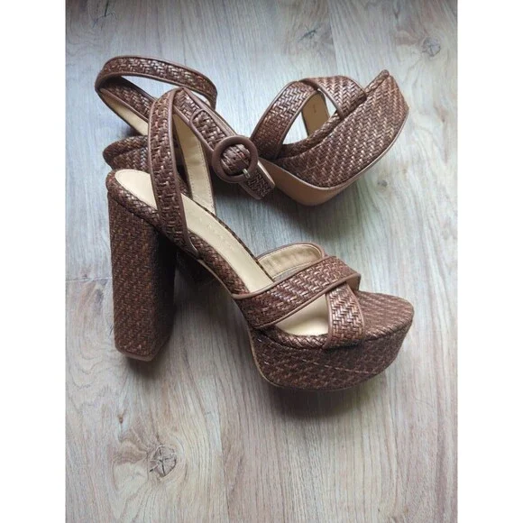 Veronica Beard Lalana Woven Jute Platform Sandal Block Heel Womens 9