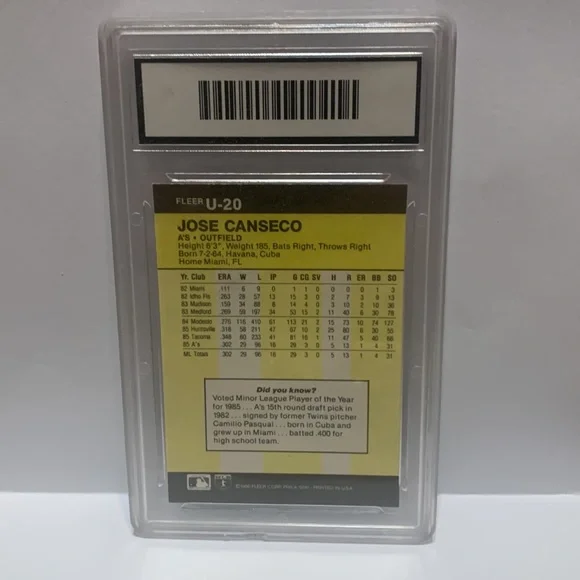 1986 Fleer Update Jose Canseco GMA 8.5 #U-20 (MISC8)