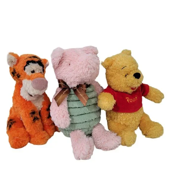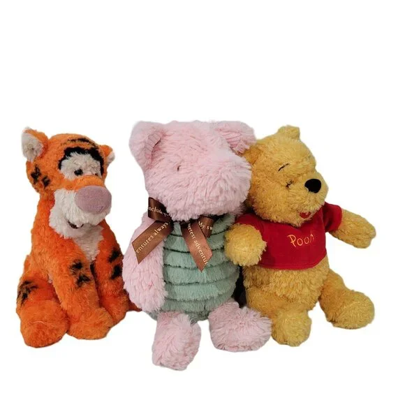 This Disney Land Winnie the Pooh plushy baby soft toy set features long fur characters- Tiger, Piglet, and Pooh. Crafted with vibrant colors of yellow, pink, and orange, the plushy style offers a soft and cuddly experience.• Official Disney product• Includes Tiger, Piglet, Pooh• Made with soft, long fur• Plushy style for cuddling• Vibrant colors- yellow, pink, orangeFeatures:• plushCondition: Pre-Owned Good