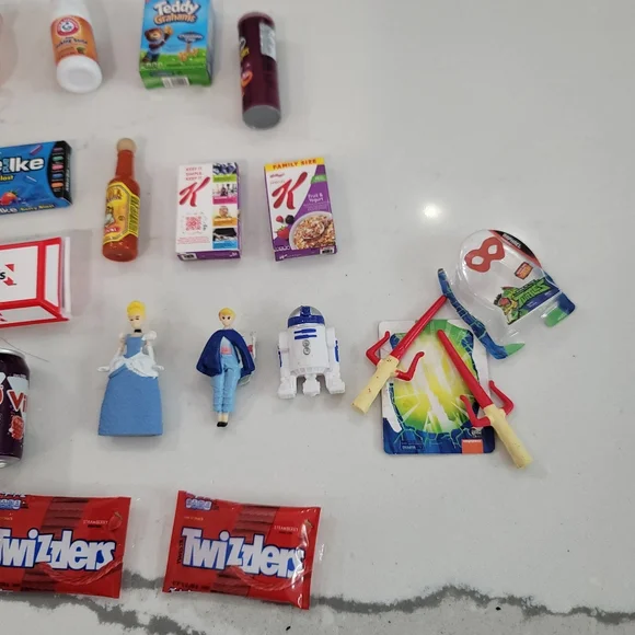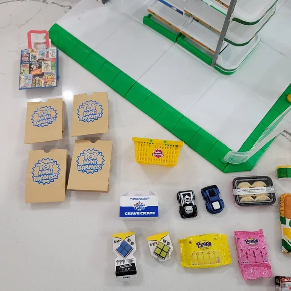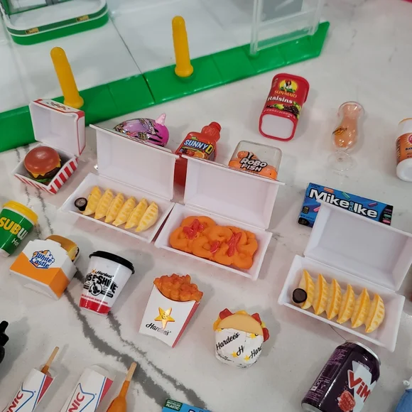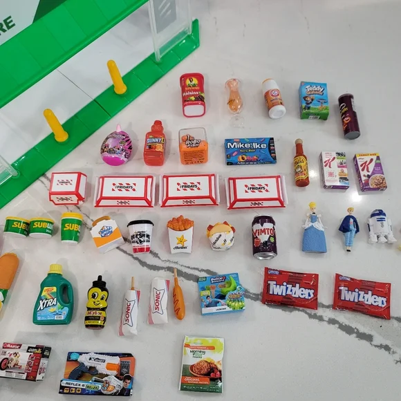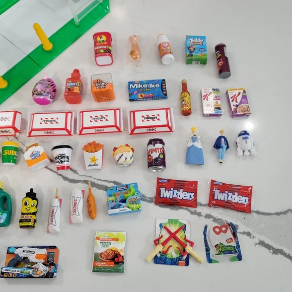 zutu Mini brands 24 mini store plus a bunch of mini brand items. please see all photos. this is sold as a lot only. thw store is only missing the cash register. the mini brand items are In good condition. the Bo peep, cinderella, r2d2 and ninja turtles sticks are out of the little packages ans the Rubio cube packages are damaged but other than that all the other items. are there and in the packages. see all photos please. subwaywhitecastleHardee´sDisneypeepscarssubwaysonicrazorsuper soakerrobofishteddy graham´s and more!!!!