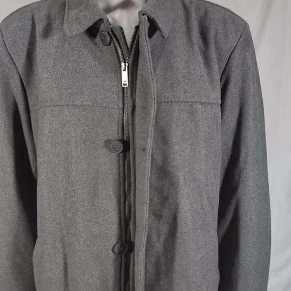 Men´s Dockers Big & Tall Wool Blend Coat Size: XXL Color: Grey Wool blend Heavyweight for warmth Mid length Full zipper and button closure 2 side slip pockets, 1 inside slip...