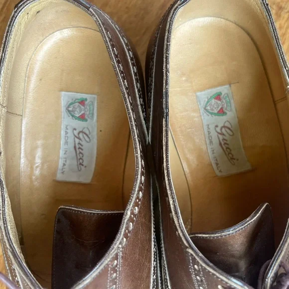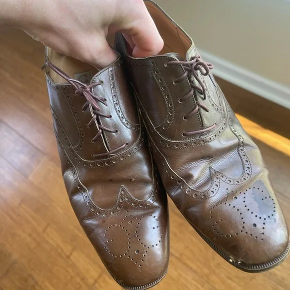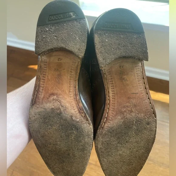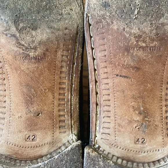 They obviously need work, and their is also a stain of some kind on the left shoe, top left area. Wore down forsure. Condition is 3/3.5 out of 10. Their is still potential in...