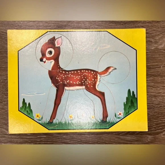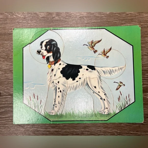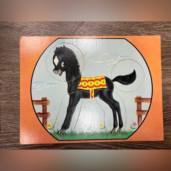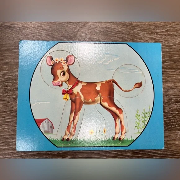 RARE 1956 Saalfield Pub Co Children’s Animal Change-O´s Game - Doz Of AnimalsIncludes 5 puzzles.A lambA dogA pony/horseA cow/calfA deer.The animal parts can be mixed and matched to make animals look silly.Each puzzle has 4 pieces.These are in amazing condition for their age.Each puzzle has been wiped clean with a disinfecting wipe.There is expected wear on some pieces that have been touched by little hands.But, no major damage at all.Would look absolutely precious framed in a bedroom.