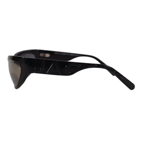 Turn heads with these bold and futuristic Marc Jacobs Wraparound Sunglasses, featuring a sleek black frame paired with gold mirrored lenses for a standout, fashion-forward vibe....