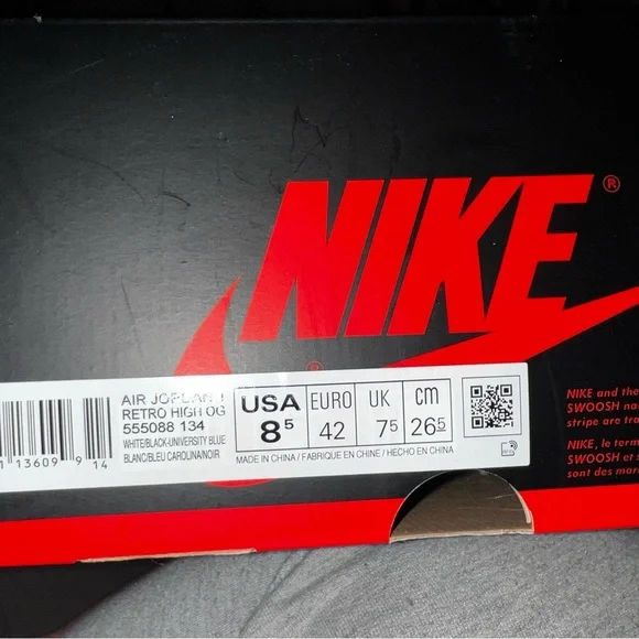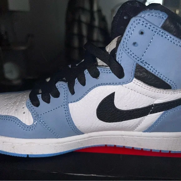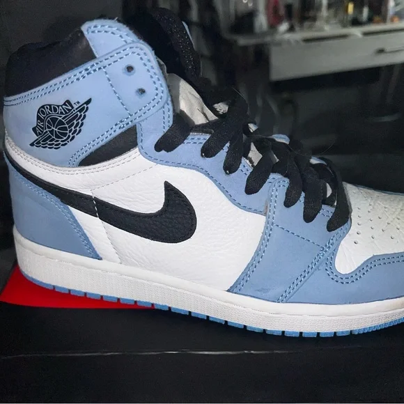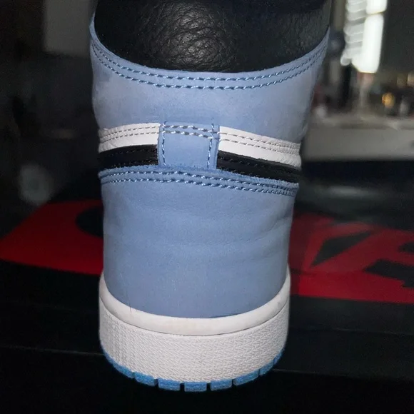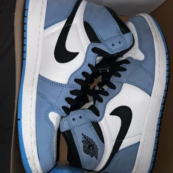 University Blue Jordan 1. Purchased for $390 but willing to sell for $230. the size is 10women 8.5men. comes with original box which is a little beat up but they have been stored only in the box. slight creasing on back of heel. stockx receipt available. willing to negotiate price