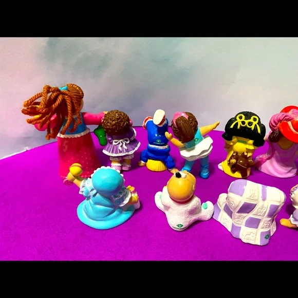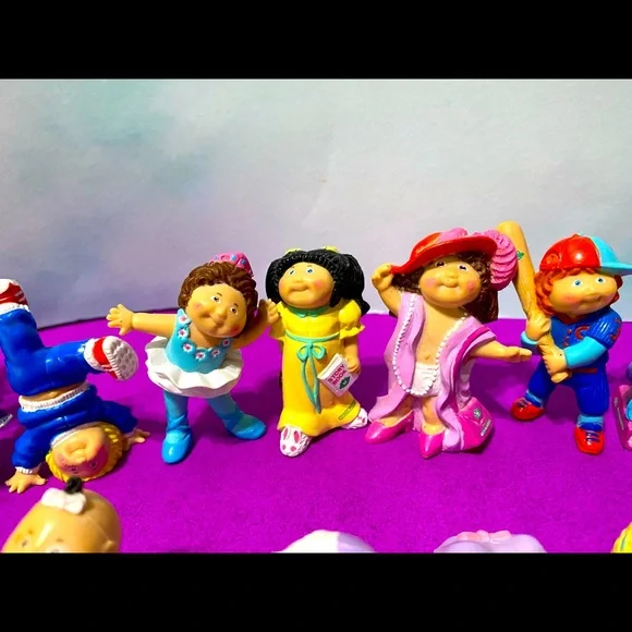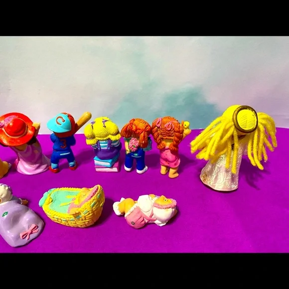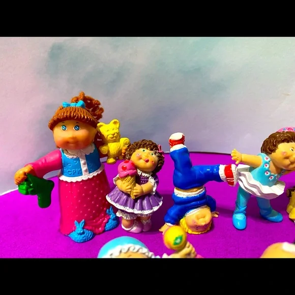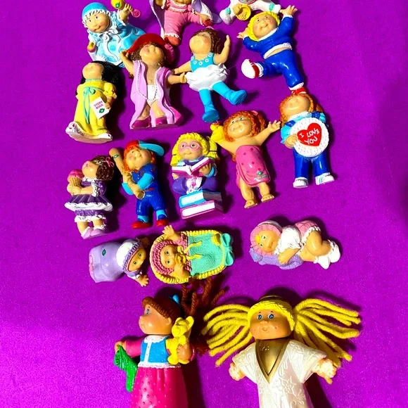 Cabbage Patch Kids Vintage 80”s & 90’s Collectable Bundle of 17 by OAA Inc Includes 1984Girl Holding Heart I Love You in Blue Overalls, 1984 Girl Tan PJ’s w/Teddy Bear, 1984 Ballerina, 1984 Boy w/ Baseball Bat, 1984 Girl Sitting on Books, 1984 Boy Standing on Head, 1984 Girlw/Icecream, 1984 Girl w/Duck, 1984 Baby w/Rattle, 1984 Baby w/Bowl & Spoon, 1985 Baby w/checkered Blanket, 1985 Baby w/Cat, 1985 Baby Crawling, 1985 Baby in Basket, 1985 Girl w/ red hat Pink robe, 1993 Girl Angel Yarn Hair, 1992 Girl w/teddy Bear & Stocking Excellent Condition May have minor blemishes Condition Shown in Pictures Sizes Vary 2”-3”