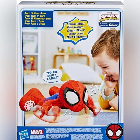Hard to find this Season! Brand New, unopened Hot Toy for boys OR girls Spidey and his Amazing Friends Marvel Dance ´N Crawl Spidey, Interactive Plush Toy with 20 Phrases & Sounds, 2 Songs, Super Hero Toys for Kids 3 & UP GET UP, MOVE, AND PLAY WITH SPIDEY: Dance ´N Crawl Spidey is a highly interactive plush toy with phrases, sounds, and hit music from the Disney Junior Show! Preschoolers will have so much fun laughing, singing, dancing, and playing with Spidey!DO THE SPIDEY DANCE: When Spidey says, "Webs up! Let´s do The Spidey Dance!", he´s got a cool dance to share! Activate dance mode and boys and girls can "Do the Spidey" along with himDO THE SPIDEY CRAWL: There´s more to play! Spidey might say, "Time to do The Spidey Crawl!" Tilt his head, rotate his wrists, place him on his belly, and crawl along with himPLAYS 2 SONGS FROM THE SHOW: Spidey includes 2 original songs from Disney Junior´s Spidey and His Amazing Friends. Look out for a special "Do the Spidey!" music video preschoolers can watch and dance to!SPIDEY HAS 20 SOUNDS & PHRASES: In additional to familiar sounds and phrases from the show, Spidey also encourages movement and interaction with playful prompts, such as, "Great job! Web up and Do the Spidey Dance!"SOFT EXTERIOR FOR SAFE ALL-DAY PLAY: This 12-inch (30 cm) tall Spidey toy has a soft exterior fabric and is the perfect friend preschoolers can take with them everywhere they go!