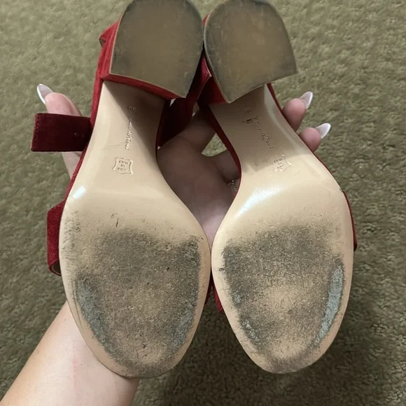 Step out in style with these elegant red suede heels. Perfect for any occasion, these shoes offer both comfort and sophistication.