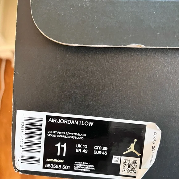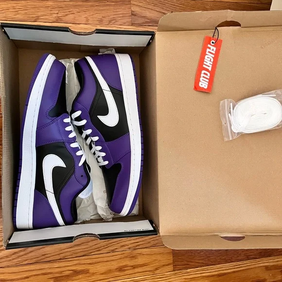 Jordan 1 low court purple black and purple