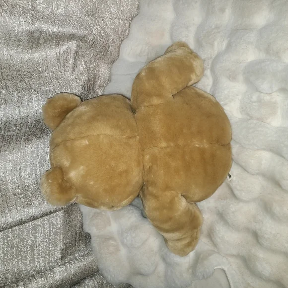 This adorable stuffed bear features a warm tan and brown color palette, making it a charming addition to any toy collection. Its soft plush texture and endearing expression invite endless cuddles and imaginative play. With its rounded body and distinct snout, this bear is perfect for snuggling and comforting moments.