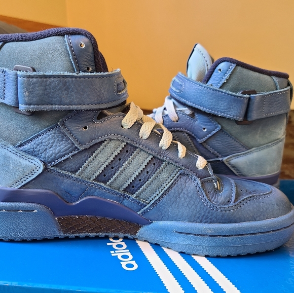 I have a set of Adidas Forum Indigo, gorgeous shoes but sadly just don´t like how they look on me! The Forum is a popular shoe, a callback to the early days of Adidas basketball shoes. They´re incredibly made, with good quality leather, laces and velcro strap. The Indigo dye looks amazing, so it´s a unique set for an already sought after shoe. I have worn them once and decided they´d be better on someone else´s feet, so I just want what I paid for them!