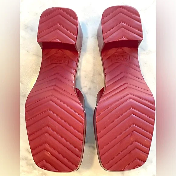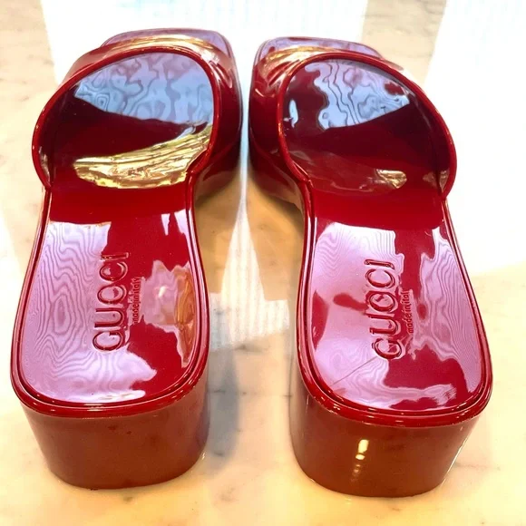 Platform Slides, rubber, logo, glossy red, practically new, 38