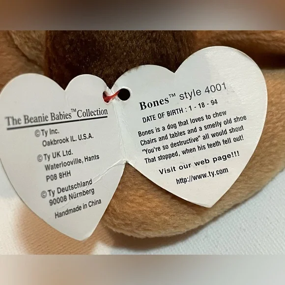 TY Beanie Babies Bones The Dog PVC Retired Rare 4th gen tagStyle 4001Birthday 1-18-94Thanks so much for looking!Check out my other beanies and listings!MAKE AN OFFER