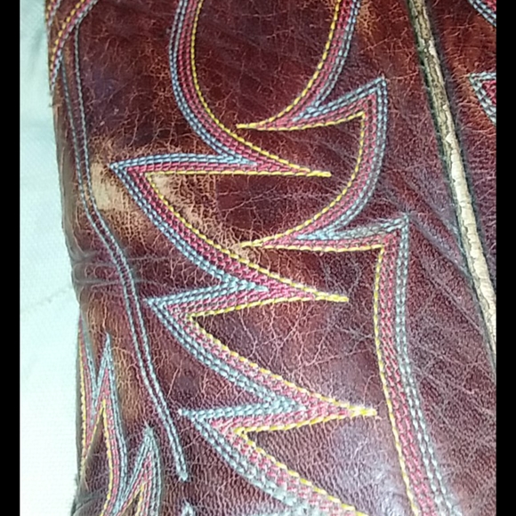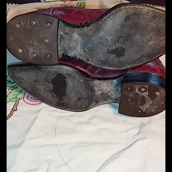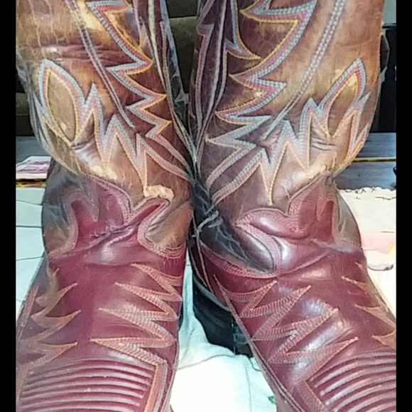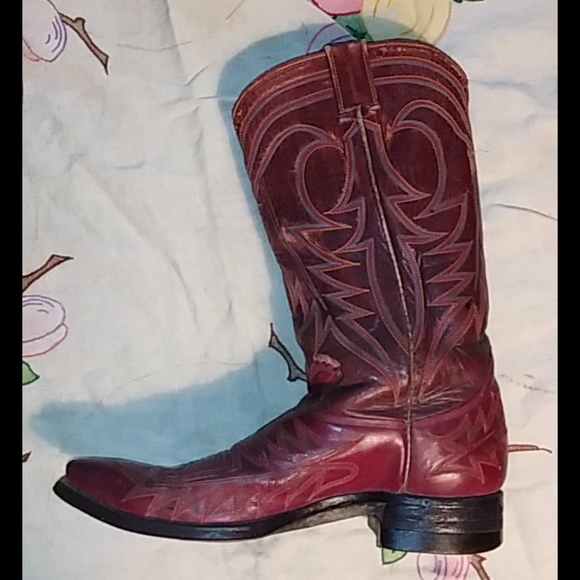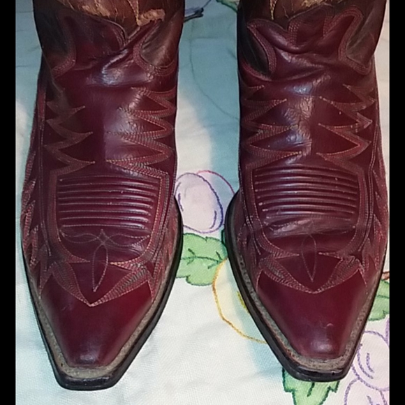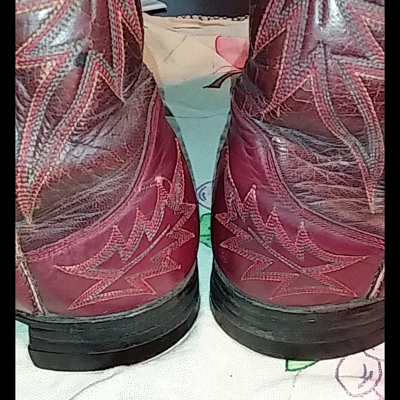 Great pair of Cranberry red vintage cowboy boots. Wingfoot Genuine Border Leather Boots. Nice stitching. Good condition with some wear. See photos. Not sure of the size. I would...