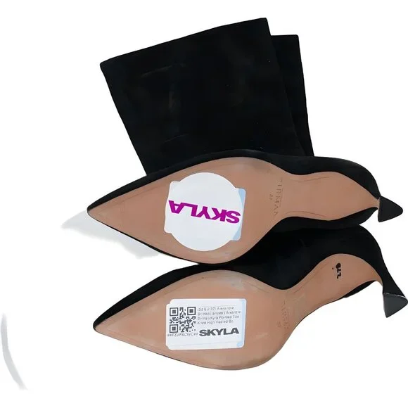 Step out in style with these chic and sophisticated knee-high boots. Crafted with attention to detail, they add a touch of elegance to any outfit. * Pointed toe design * Knee-high length * Sleek black finish * Comfortable heel heightOwn the stunning Alexandre Birman Kyra Pointed Toe Knee High Heeled Boots in EU 37, in excellent condition. Fast shipping and actual photos show exact condition.