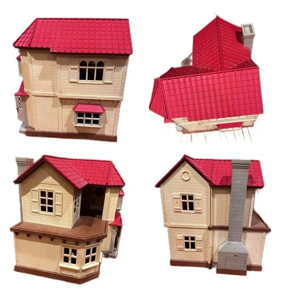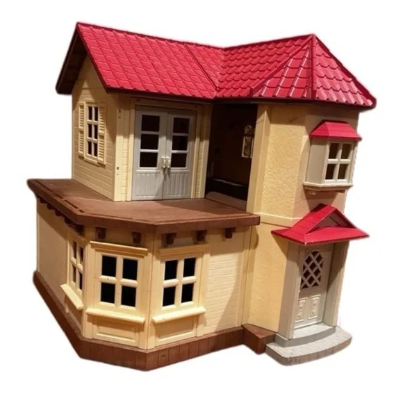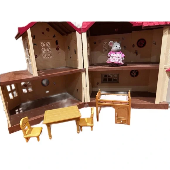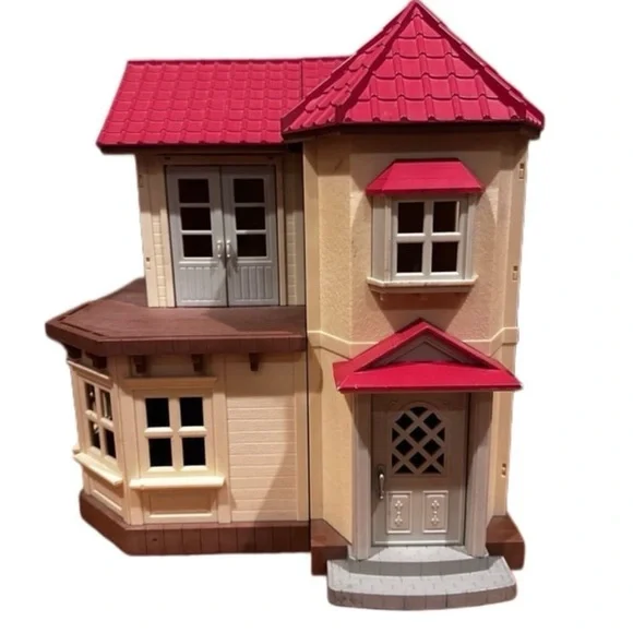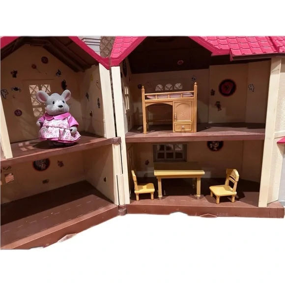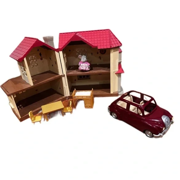 Calico Critters Luxury townhousew/ Bunny, Car & FurnitureCalico critters cherry red cruiserLuxury Townhome measures 12” x 12” x 12” closed, 21” x 21” x 12” opened