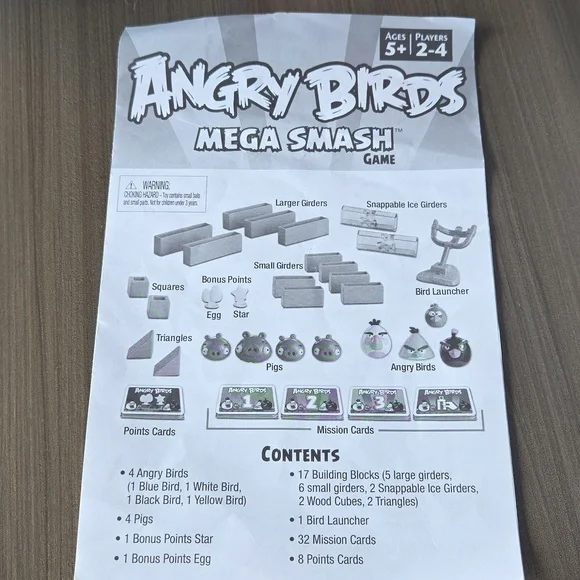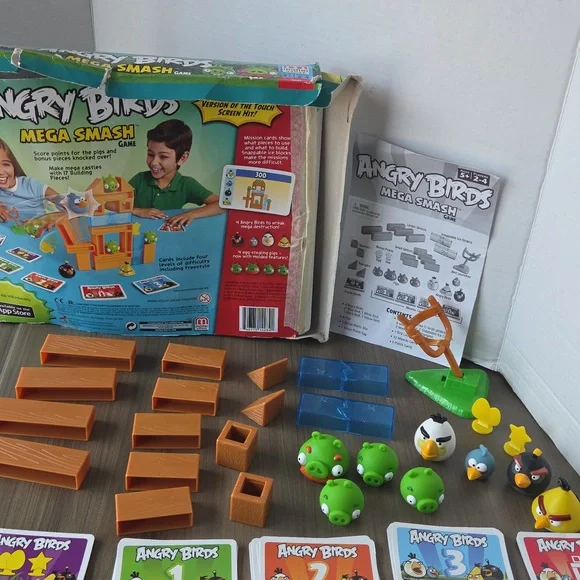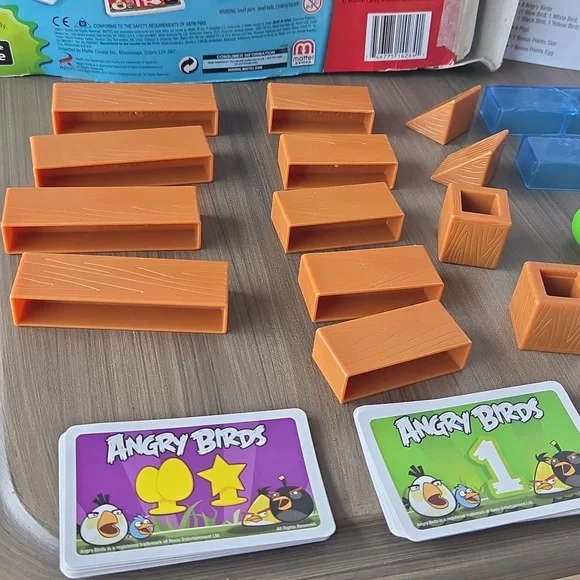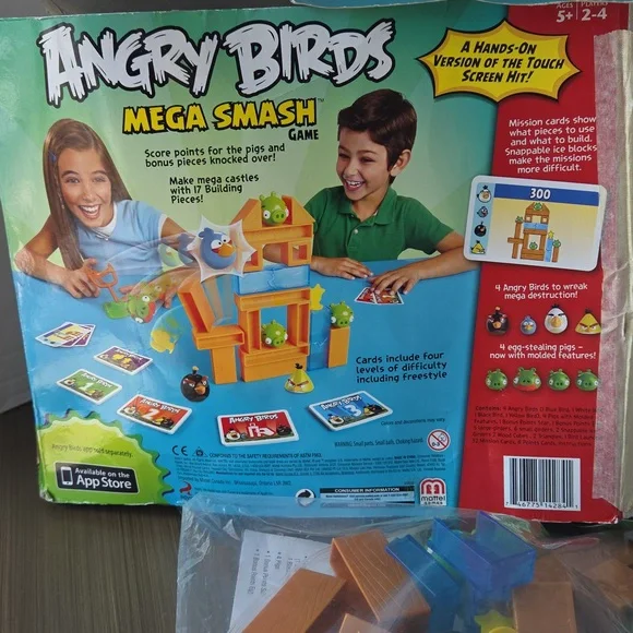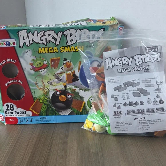 Dive into the world of Angry Birds with this vibrant puzzle game set by Mattel. Featuring colorful bird and pig pieces, this game offers endless fun and challenges. Crafted from durable plastic, it´s perfect for fans of the iconic franchise. Box is ripped as shown. All pieces except 2...one large girder and one small.Pictured is what is included. Smoke free and pet friendly home s