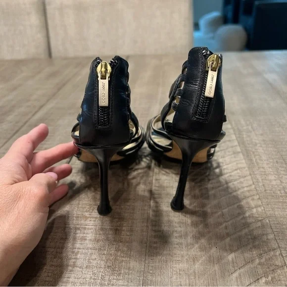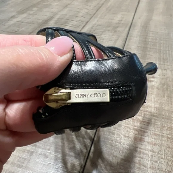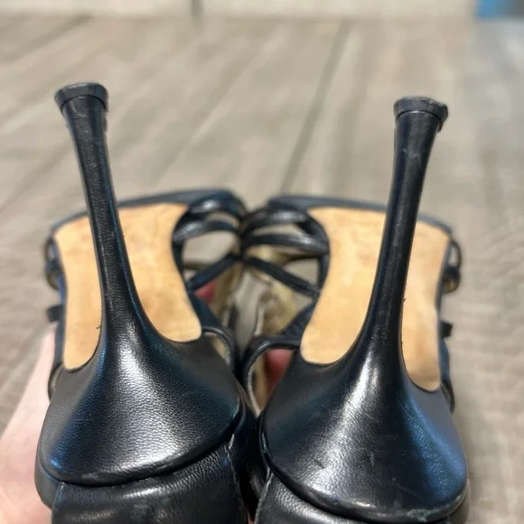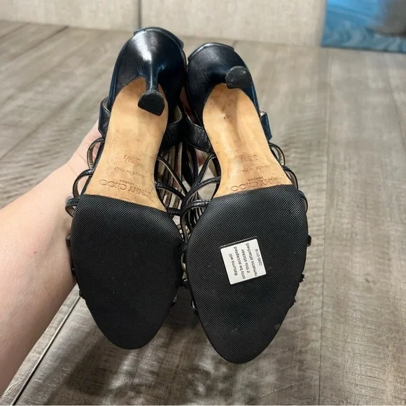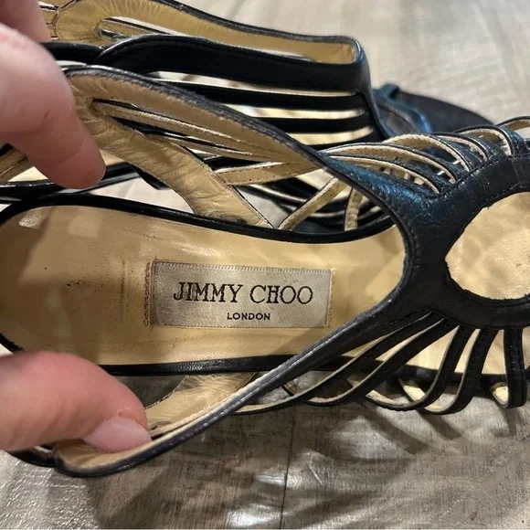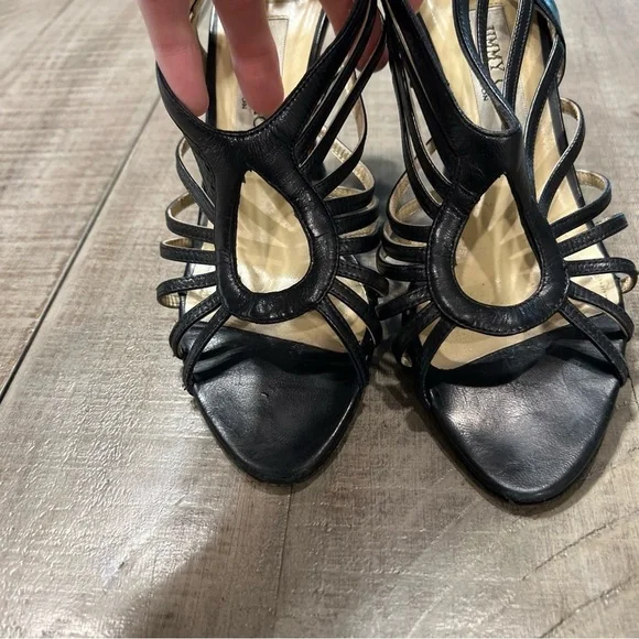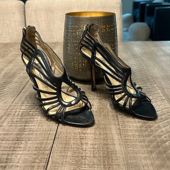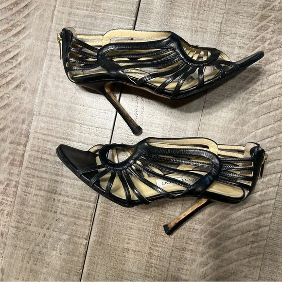 Jimmy Choo Samoa Leather Cut Out Cage Heels Sandals Sz 38.5 US 8.5 Black