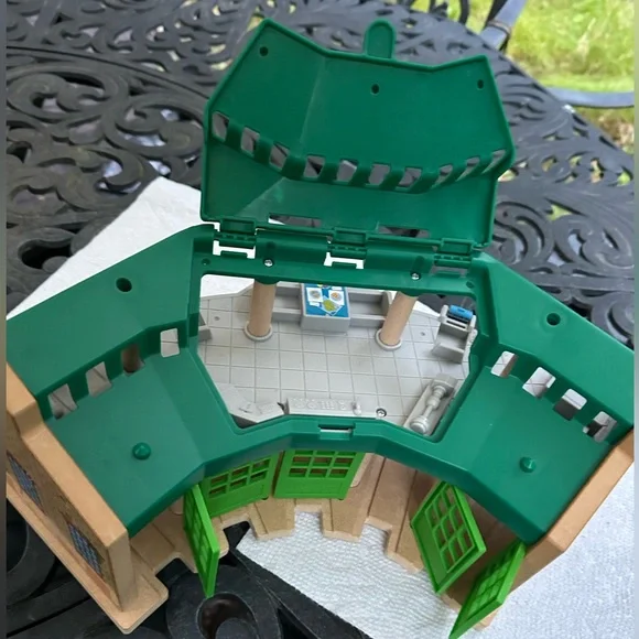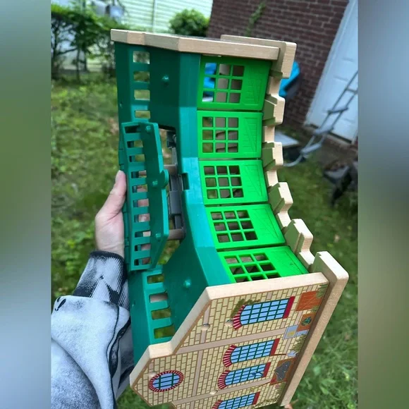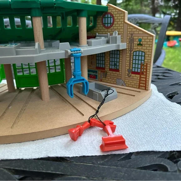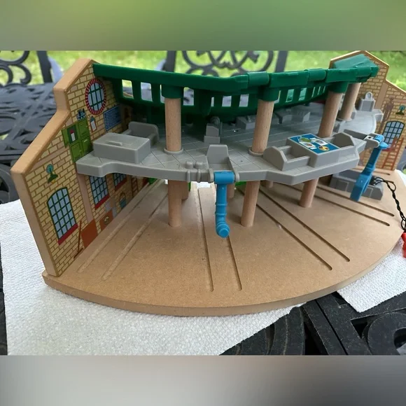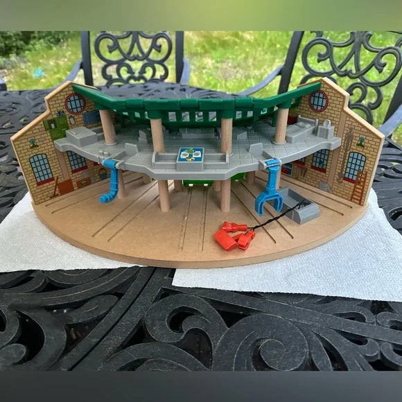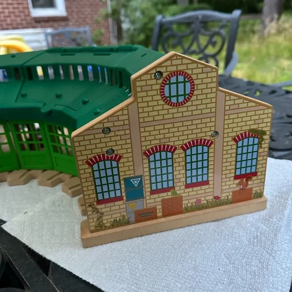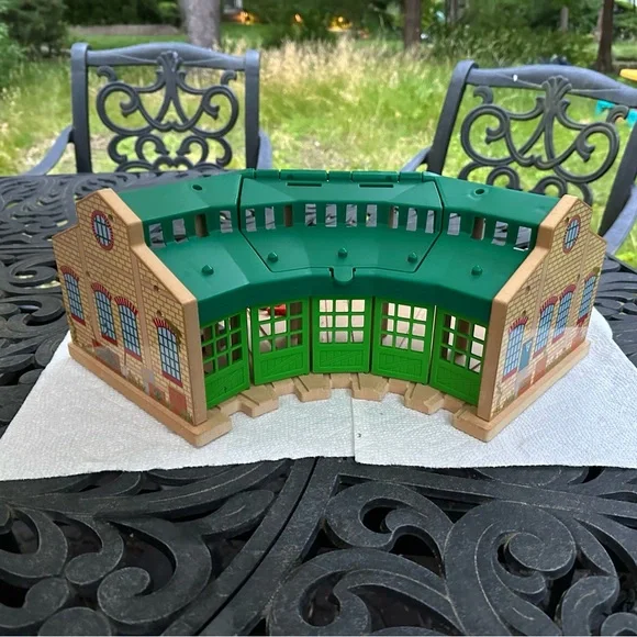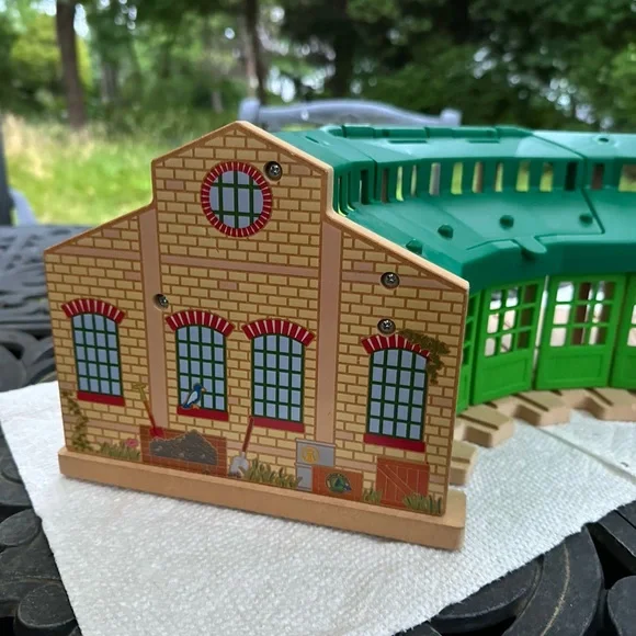 Thomas and friends Tidmouth shedsColorful wooden train roundhouse with green doors and roof. Perfect for train enthusiasts.Excellent condition